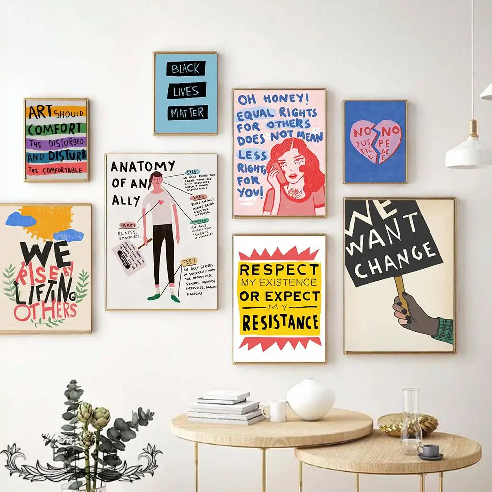 Protest Quotes Prints Posters Motivational Slogan Anti Racism Sign Black Lives Matter No Justice No Peace Canvas Painting Aliexpress Home Garden